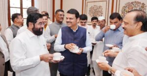 विधिमंडळाच्या अर्थसंकल्पीय अधिवेशनाच्या पूर्वसंध्येला आयोजित चहापान कार्यक्रमास मुख्यमंत्री देवेंद्र फडणवीस, उपमुख्यमंत्री एकनाथ शिंदे, उपमुख्यमंत्री अजित पवार यांच्यासह मंत्रिमंडळातील सदस्य, आमदार उपस्थित होते.