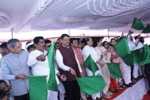 अमळनेर (भां) ते बीड नवीन रेल्वे मार्गाचे उद्घाटन आणि बीड ते अहिल्यानगर रेल्वेचा शुभारंभ मुख्यमंत्री देवेंद्र फडणवीस यांनी रेल्वेला हिरवा झेंडा दाखवून केला. यानिमित्ताने आयोजित कार्यक्रमात ते बोलत होते. यावेळी उपमुख्यमंत्री अजित पवार, पर्यावरण व वातावरणीय बदल, पशुसंवर्धन मंत्री पंकजा मुंडे, खासदार रजनी पाटील, खासदार बजरंग सोनवणे, आमदार सर्वश्री विक्रम काळे, धनंजय मुंडे, विजयसिंह पंडित, आमदार श्रीमती नमिता मुंदडा, विभागीय आयुक्त जितेंद्र पापळकर, जिल्हाधिकारी विवेक जॉन्सन, जिल्हा परिषदेचे मुख्य कार्यकारी अधिकारी जितीन रहमान, पोलीस अधीक्षक नवनीत काँवत, मध्य रेल्वे महाप्रबंधक धर्मवीर मीणा, विभागीय रेल्वे प्रबंधक राजेशकुमार वर्मा आदी उपस्थित होते.
