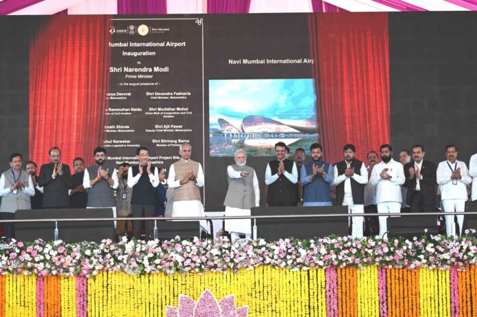 नवी मुंबई आंतरराष्ट्रीय विमानतळाचे प्रधानमंत्री नरेंद्र मोदी यांच्या हस्ते उद्घाटन